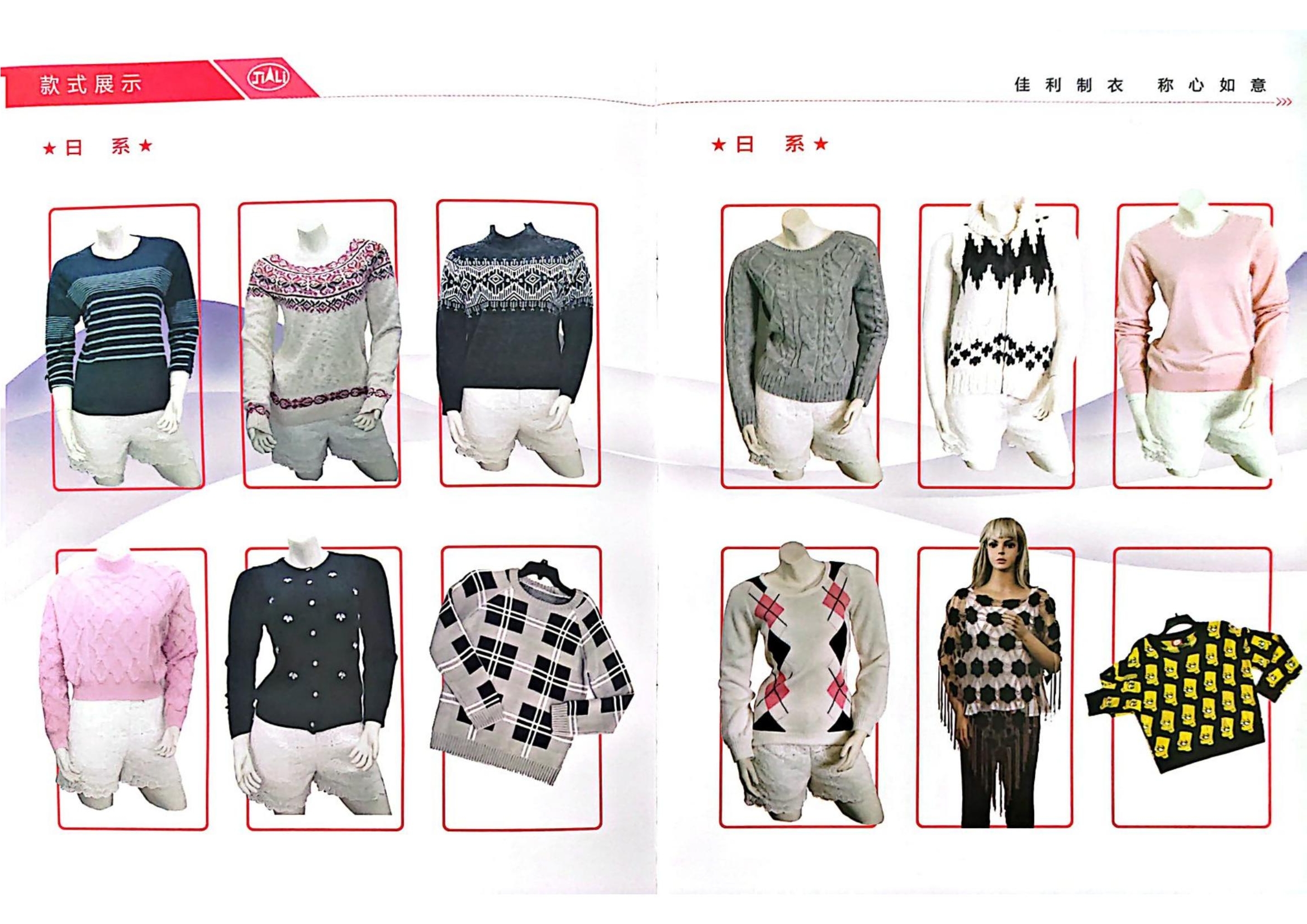 山東省乳山市佳利制股份有限公司于2001年2月成立,位于乳山市城區工業園營口路?,F有從業人員260人,其中男性100人,女性160人。固定資產5000萬元,占地22000㎡,建筑面積13800㎡。主要生產各種針型的毛衫及手鉤、刺繡等工藝服裝,針織、梭織面料服裝,主要銷往日本、美國、意大利、英國等幾十個國家和地區。
